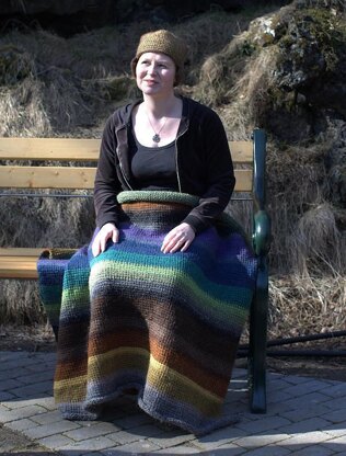This blanket in Tunisian crochet was made out of 1 kilo leftover yarn. The striped pattern is totally random (depending on how much yarn I had in each colour). It is quite decorative, nice and tosty.