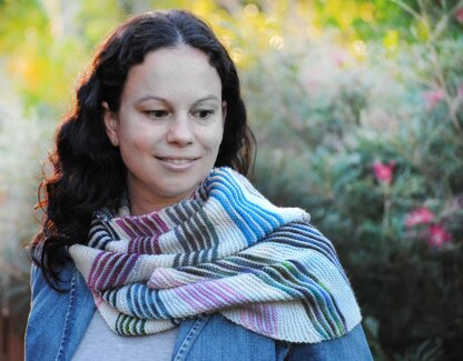 Knit in fingering/sock weight yarn, this shawl is designed to use those little bits of leftover yarn which are too pretty to part with.