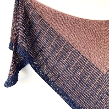 Léloa is a two-tone shawl knitted in garter stitch and lined with slipped stitches. It is knit from the top down with increases along the side edges as well as on each side of the center stitch. Chart and written pattern.