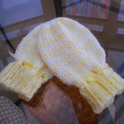 A pair of 4 mm (US 6) knitting needles A length of lemon ribbon