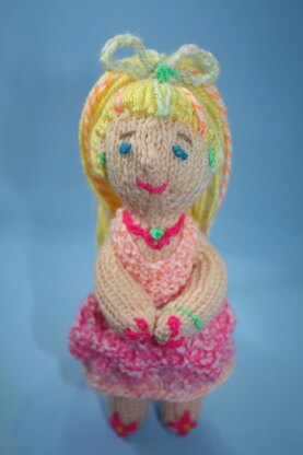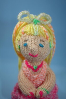 Meet "Lemon Drop" the miniature diva! She stands a mere 8" tall from the top of her full head of hair to her tiny toes. She is a quick and easy pattern to knit and was created as an addition to the Pink Lemonade Sundress and Sandals design. Her dress is knit in the shell design that is used in the baby pattern and she is child safe sporting only embroidered embellishments. Quick, easy and a great stashbuster as she takes such a wee bit of yarn of your choice. Just be sure to give her a full head of hair to maintain her "diva" status!