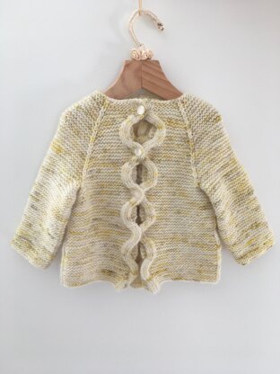 The pattern is for use with fingering weight yarn and is in four sizes, from newborn to 18 months (0 - 3, 3 – 6, 6 – 12, and 12 – 18 months). Detailed written instructions and a schematic diagram are included and all measurements are given in both metric and imperial. The body is knitted backwards and forwards in rows and the sleeves are knitted in-the-round.