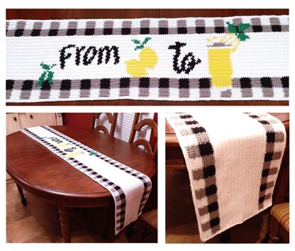 (1) crochet pattern and (1) graph pdf files - From Lemons to Lemonade Table Runner. Made with really soft “I Love This Yarn” brand yarn, this sweet table runner is a bright and sunny way to usher in summertime!
