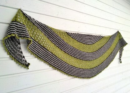Lempi is a three-color shawl made up of squishy garter stitch, stripes, and mesh lace. Worked in DK-weight yarn it is quick to knit and the perfect thing to wrap yourself in when temperatures plummet!