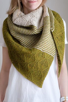 Slightly asymmetrical, triangle shaped shawl, worked from one tip to the bind off edge. The shawl is worked with two colors but it will work as a one color version also. Please note that the lace pattern is charted only.