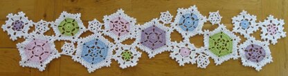 Originally published in Mollie Makes issue no 60, a festive table runner made with versatile snowflake motifs, which can be used individually as wine coasters and hanging decorations. For the coasters and table runner, choose colours to suit your décor and mix and match the 4 sizes and 3 styles of motif.   For a hanging decoration use white mercerised cotton, with a sheen that will make your snowflake glow and a stiffness which will help keep its shape.