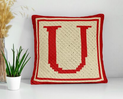 Letter U Red Cream Bordered Cushion Mini C2C Crochet Pattern Initial Name ABC Pillow