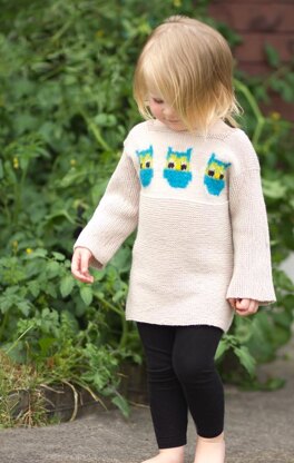 The sweater in the main photograph is size 2 years, with 3 large owls worked on the yoke.