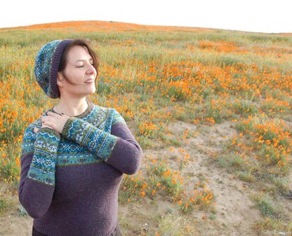 This is a pattern for a circular yoke jumper worked from the top down and using the Fair-Isle knitting technique. There are instructions for both a plain or motif sleeve. The plain sleeve has a basic sleeve shaping, the motif sleeve is a wider sleeve over the lower third of arm. Since this is worked from the top down you may make small adjustments to size by adding more or fewer sts at underarm cast on.
