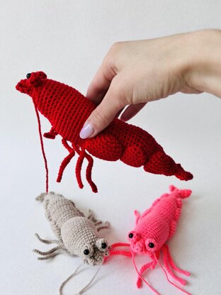 Size of a finished Shrimp or Prawn toy is about 6-7 inches length with required materials (may be bigger or smaller - depends on the yarn and hook you choose).