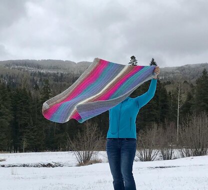 Requires 4 cakes of Mandala yarn or 2,360 yards (2,160 meters) of any yarn. The yarn cakes do not have to match and this is a great pattern for unique cakes (mandalacorns). The blanket uses double crochet stitches in US terms and dk weight yarn held doubled. Experienced crocheters in a hurry can make it in 4 to 5 hours or less. No rush, though, life’s not a race! The blanket grows quickly even if you relax and take your time. Share your project with #lifesnotarace on Instagram and post it in our Pretty Peaceful People group on Facebook! Tag @prettypeacefulcrochet too!