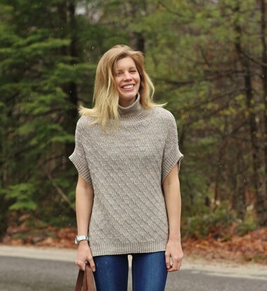 Sweater is worked bottom-up flat, shoulders are seamed along edge. Sts are then picked up along outer edges to finish side rib.