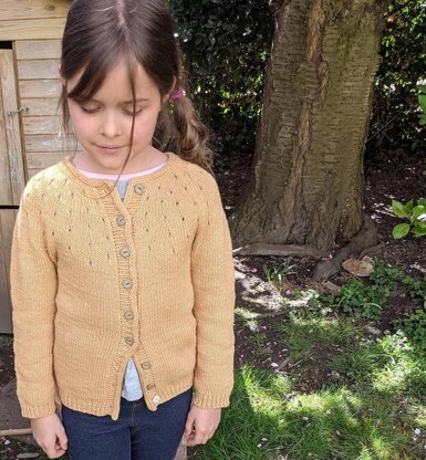 It has a circular yoke top-down construction: you can decide if you like a plain stockinette stitch cardigan with nearly invisible increases or if you prefer a summery, eyelet increase or or a textured nupp increase. You can also choose from a range of options for the sleeves: short sleeves, or straight or shaped longsleeves.