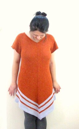 Tunic with bias drape and striped border.
