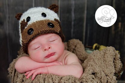 This little cow hat is perfect for newborn photos, farm babies, Halloween or any occasion! Those little ones will sure have you moo-ving in for snuggles!