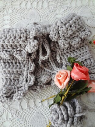 Yarn and hook: 120 gr of – Alize Superlana Maxi bulky virgin wool yarn and a 8 mm hook. (US G, UK 7). The foundation chain is worked with one hook size bigger: 9 mm. The content is 75% Acrylic and 25% wool. Yarn meterage: 100 meters per 100 gr./skein (109 yards). Gauge: 12dc st. over 10 cm/ 3.93" in first row. Other: Tapestry needle for weaving ends. Stitches: chain (ch), chain space (ch-sp), single crochet (sc), double crochet (dc), double crochet back loop only (dcblo), front post double crochet (fpdc), treble (tr). American terminology used. Measurements of neck-warmer -Length: 25cm/9.84", width : 42.5cm/16.7"