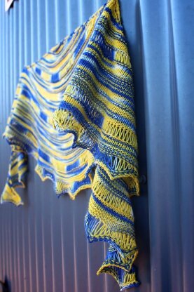 This is a simple crescent shawl designed for a beginner. It uses a mix of stockinette, garter and drop stitches to add detail and texture. It uses a single skein of approximately 370-400m per 100g, great for those single skeins that might be hidden in your stash.