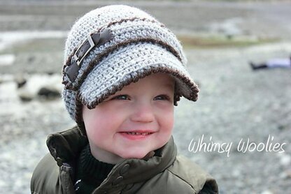 "Linden Newsboy" I created the ‘Linden Newsboy’ for my sweet grandson. Worked up in pewter tweed, trimmed with a warm brown and embellished with a buckle and strap. This hat is trendy and masculine for our little man!