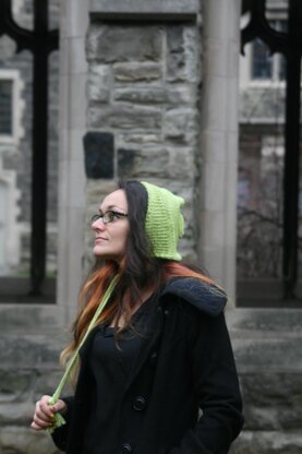This warm, wooly bonnet is worked in all over linen stitch, giving this knit great,, sturdy structure. It'll stand up to the cold winds of winter! Tassels at the end of each tie and the top of the hat add a cute detail; the dense fabric is easily folded, so the short rows at the front can be flipped back for an extra-layer of coverage and different look.