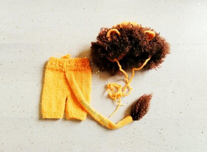 This is an instant download digital pattern of a lion prop for 6-month-old babies. Changing the size of needles and yarn will change the size of the costume.