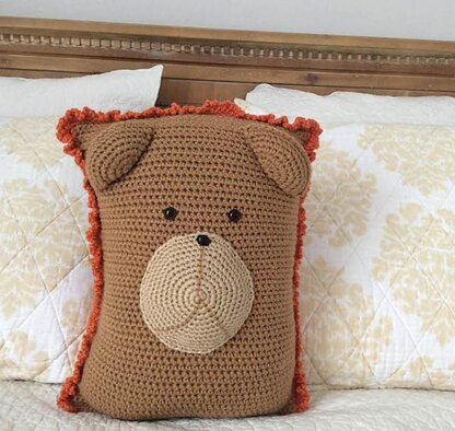 A lion’s face and mane add character to a simple, stuffed pillow. The pocket on the back can be used to hide a gift or to keep a book safe during travels.