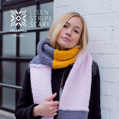 Download the PDF pattern for Lisen Stripe Scarf - Scarf Knitting Pattern in MillaMia Naturally Soft Super Chunky & start knitting today!