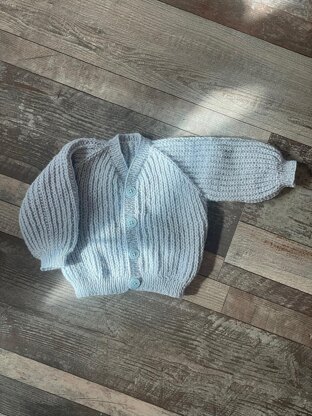 This cardigan is knitted from the top down with false brioche and with a v-neck.