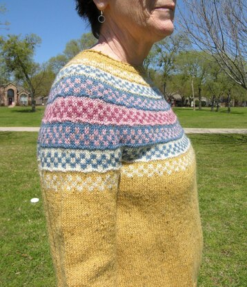 A simple top down pullover with a color work yoke. Easy enough for a beginner garment/color work knitter and challenging enough to keep the more advanced knitter interested.