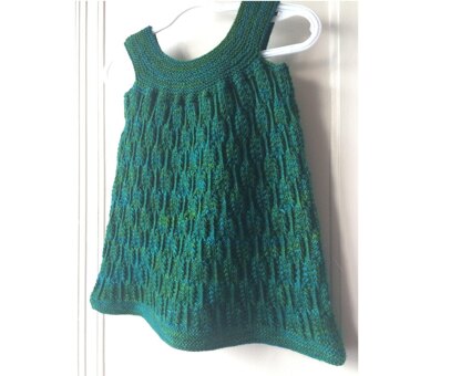Little Cinnamon is a lovely dress, which is completely seamless, top-down. This will grow with your little girl into a tunic top, has a lot of positive ease and the length can easily be adjusted. This looks great over a long sleeve shirt and tights for winter and as a dress in the summer. Suitable in wool or cotton. The lace is written and charted.