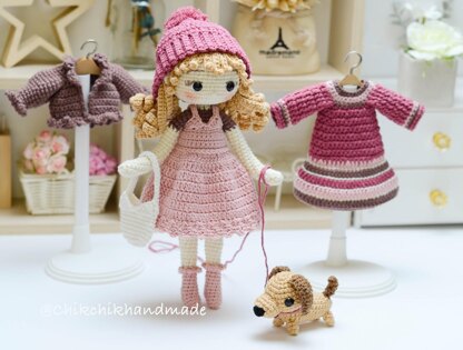 PLEASE READ BEFORE PURCHASING! This is a SOFTCOPY and digital DOWNLOADABLE PATTERN, NOT THE FINISHED PRODUCT. Daisy, the little doll, stands out with just 48 stitches for the head, no body sewing, and minimal stitching for the outfit and Dachshund pet. * Featured: - LITTLE DAISY finished approximately 10.2 inch ~ 26cm tall - suitable for decoration or baby toy. - The tutorial/pattern in English (using US crochet terms & convention) & Français, Español. - LITTLE DAISY printable PDF file with 27 pages and 111 images to make it easy. - LITTLE DAISY's vest, dress, hat, tote bag are removable.