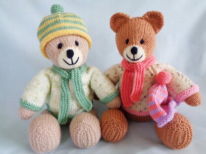 The bear is knitted in stocking stitch along with his Jumper bobble hat and scarf