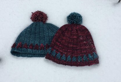The faster, bulkier version of my Little Fires, Little Fires 2: Bigger Fires features the same stitch pattern with a new crown that is perfect for a giant pompom. Like the first hat, Little Fires 2: Bigger Fires features brightly colored flames breaking up the garter ribbed columns. Choose a solid, semi-solid, or tonal for the body of the hat. The flames are perfect for using up leftover yarn. Pick a solid or variegated that contrasts well with your main color for maximum effect.