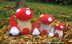 The gnome and mushroom house are easy to make. You can only use single crochet stitches (US) or double crochet stitches (UK). They are made from No 5 yarn (Bulky, Chunky, Craft, Rug) and a 5.5 mm hook (US: I/9, UK: 5). The instructions include the gnome and mushroom house. The gnome and mushroom can stand by themselves.