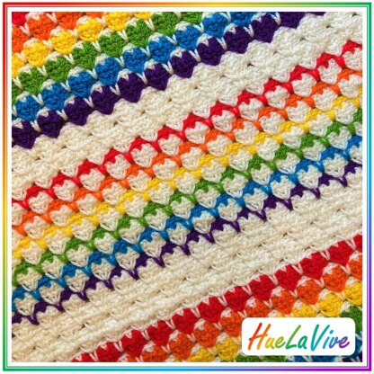 This is a really fun crochet pattern, for creating a pretty and cozy rainbow Afghan/blanket. The pattern works well with two colours or more and you can crochet it in size you like.