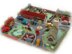 It includes the patterns for the cars, people,petrol pumps, walls, fences, animals, shaggy plants, vegetables and a pattern for the Knittington High Cross.