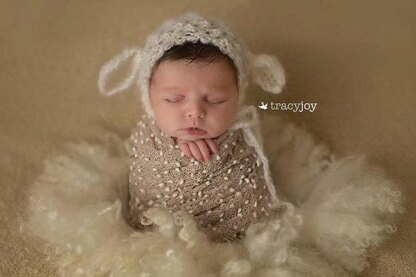 This beautiful knitted new born bonnet is worked flat, all parts separately and sewed together, Knitted in delicate mohair yarn .You can use any kid mohair yarn ,or yarn in weight 3.will fit a new born up to 2weeks. YARN-PHILDAR-PHIL YARN-60 yards GAUGE -16st/24rows/4’’