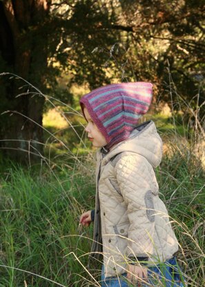 This little hood is a great way to use up those partial balls of fingering weight yarn that are lingering in your stash. The hood is worked from the bottom up, and is closed at the top with kitchener stitch. With only one button as a closure, you can use something special. I found a handmade ceramic button shaped as a flower for Molly's hood.
