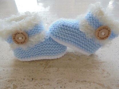 Cute Knitting Pattern Baby Boy Booties - This Pattern Makes Three Sizes of Booties 0 to 3, 3 to 6 and 6 to 9 months. Made on two needles all in one peice with back seam.