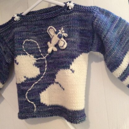 A cute little 3D plane soars between fluffy clouds in a beautiful blue sky. Who wouldn’t be carried away by such a charming scene? This delightful little top will look gorgeous on any baby.