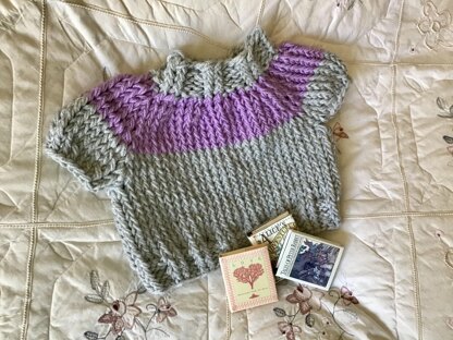 Here is that preppy look in this adorable pullover! Unisex. Knit entirely in one piece with no seams. Simple knitting stitches throughout. For ages 3-5 years old.