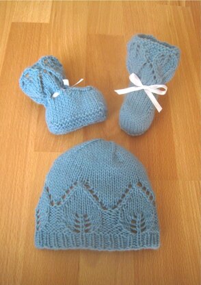 - This is an intermediate level pattern - hat is knit in the round, the booties are knit flat and include picking up stitches and both use simple lace Sts