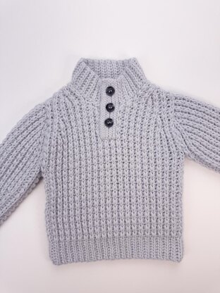 Create a timeless and cozy look with this crochet pattern for a children’s sweater, featuring a sophisticated mock neck collar and a classic polo neck opening. This design combines comfort with modern style, making it an essential piece for your little one’s wardrobe.