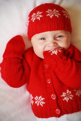The pattern includes instructions for the entire set of cardigan, hat and mitts.