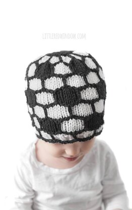 If you have been looking everywhere for a GOOD soccer ball hat knitting pattern, you finally found it! As far as I can tell, there isn't one in existence that doesn't require either applique of pentagon shapes (not realistic) or knitting tons of individual hexagons and seaming them all together (so time consuming). Well, I finally found a method that makes a super adorable soccer ball hat and is easily knit in the round! Hooray! Or should I say Gooooooaaaallll!
