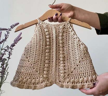 his is a PATTERN for crocheted Summer Top! Perfect little top for girls, fun to make and comfy to wear! A lot of photos and detailed description will make it easy to follow! Pattern includes links to vides! Perfect project for beginners! Skill level: easy Sizes: 6-9 months 1-2 years 3-4 years 5-6 years *Pattern is easy to adjust to any size you want! The pattern is written in STANDARD AMERICAN TERMS! Language - English You will need: • Crochet hook: 4 mm (US G-6) • Yarn weight: DK (11 wpi) • 6-9 months – about 2 ½ balls, totally 125 grams (4,5 oz) / 250 m (270 yards) 1-2 years – 3 balls, totally 150 grams (5.4 oz) / 300 m (327 yards) 3-4 years – 4 balls, totally 200 grams (7.2 oz) / 400 m (436 yards) 5-6 years – 5 balls, totally 250 grams (9 oz) / 500 m (545 yards) (I USED DROPS MUSKAT, COLOUR - 23)