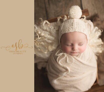 This is a downloadable PDF pattern for the knitting of this Locke bonnet with optional pom pom