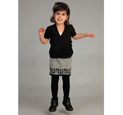 This is knit entirely in the round and the A- line skirt can easily be adjusted in length.