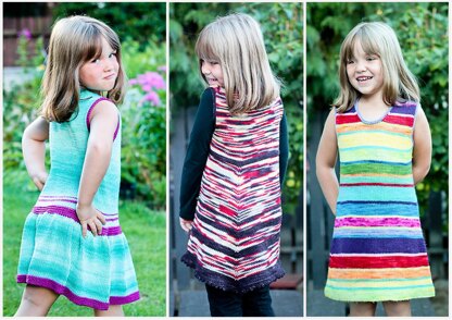 My favorite part about this design is that it allows you to stash bust your leftover yarns, it is also great for showcasing your prized variegated skeins you have been hoarding for a long time. The dress is equally amazing in gradient or self-striping yarns.