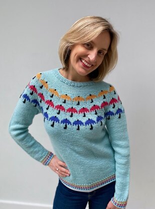 Celebrate London’s rainy reputation with this stranded yoke pullover. London Skies features brightly coloured umbrellas and simple coloured details at hem and cuffs. Knit in cosy DK yarn, this pullover will have you smiling on even the wettest of days.