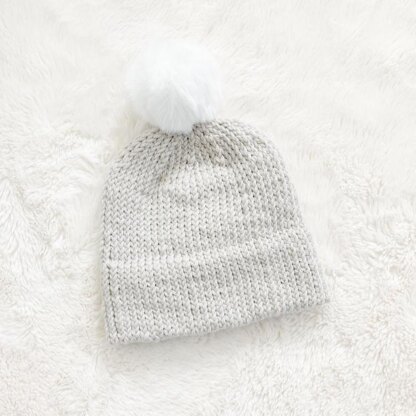 Easy enough for beginner knitters, the Londynn Beanie will add some warmth + coziness to your winter wardrobe! The faux fur pom pom provides the perfect finishing touch. This knitting pattern is suitable for beginner knitters and the finished hat is perfect for your winter or holiday travel, ski trip, or for a Christmas gift for a friend or family member.